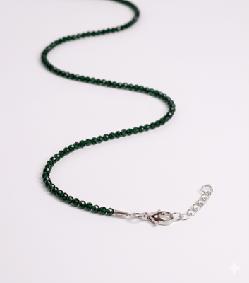 Чокеры из авантюрина – это стильные украшения, которые гармонично сочетают в себе элегантность и природную красоту натурального камня. Авантюрин известен своим мерцающим блеском, напоминающим звездную пыль, а в формате чокера он становится акцентным аксессуаром, который подчеркивает изящность шеи и завершает образ.