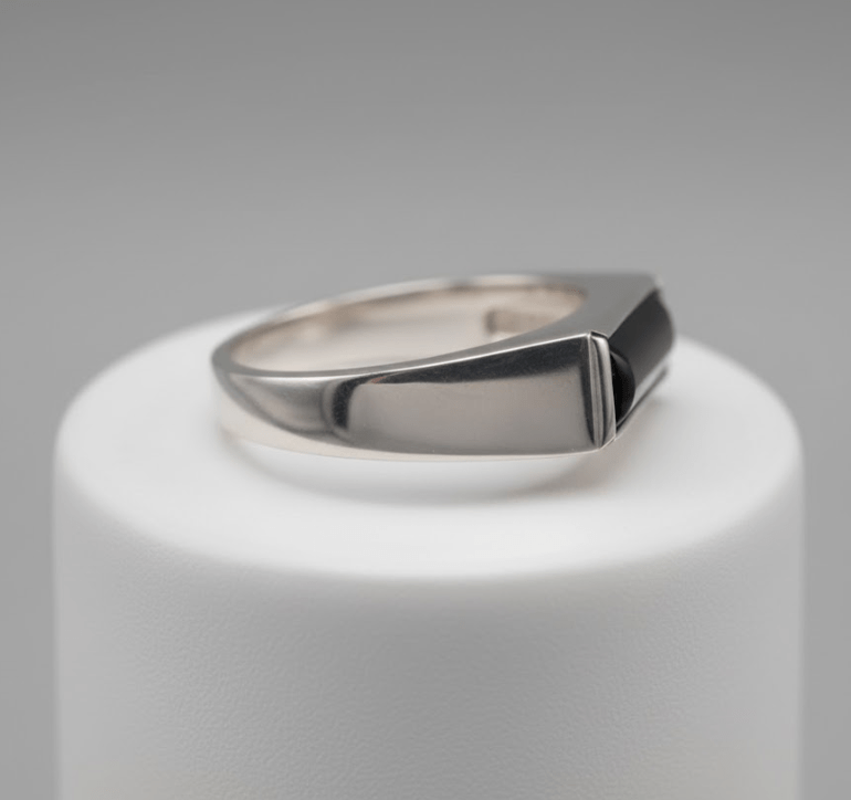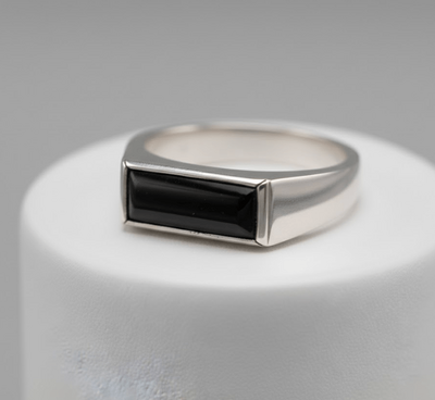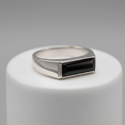 Стильное мужское кольцо с природным чёрным турмалином — символ силы и внутреннего равновесия. Камень добыт в горах Афганистана и Пакистана, где рождаются кристаллы с насыщенным глубоким оттенком и естественным блеском.